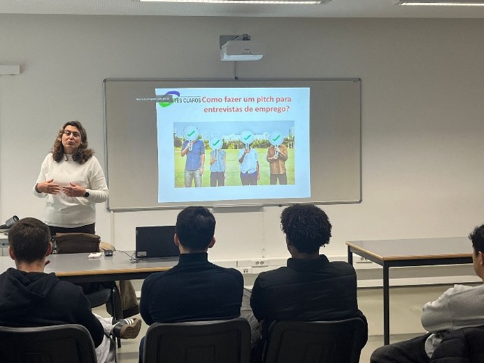Os alunos do 12º G, Curso Profissional Técnico de Gestão de Equipamentos Informáticos, e 11ºG, do Curso Profissional Técnico de Multimédia, participaram numa sessão de técnicas de procura de emprego em parceria com a Associação de Desenvolvimento Montes Claros.