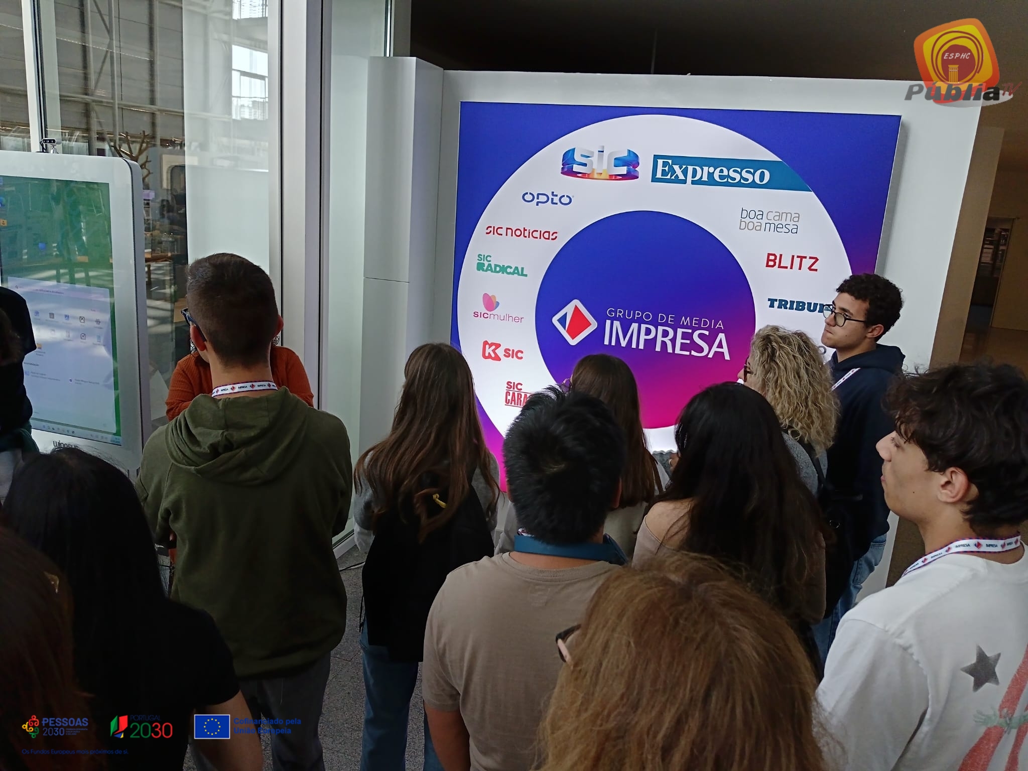 Posteriormente, nas instalações do Grupo IMPRESA, os alunos tiveram a oportunidade de conhecer mais de perto o funcionamento de um dos principais grupos de comunicação social do país. Durante esta visita, contactaram com diferentes áreas associadas à produção, edição e difusão de conteúdos mediáticos, bem como com os processos de trabalho inerentes à produção televisiva e jornalística. Este momento permitiu aos alunos compreender melhor a dinâmica do setor dos media, assim como os desafios associados à produção de conteúdos